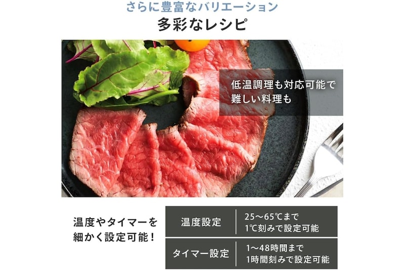 Amazonでみる甘酒メーカーとしても使えるほか、低温調理にも対応しているので、発酵だけにとどまらず日々の食卓の幅が広がります。