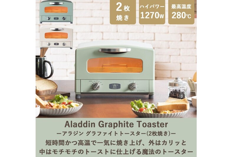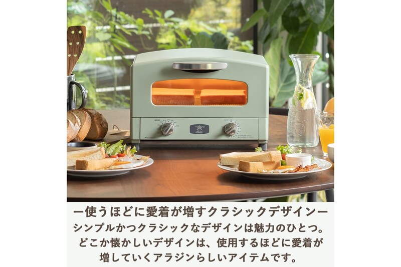 Aladdin(アラジン)グラファイトトースター AET-GS13C(G)は、毎日のトーストを手早くおいしく焼き上げたい方に向いた2枚焼きモデルです。