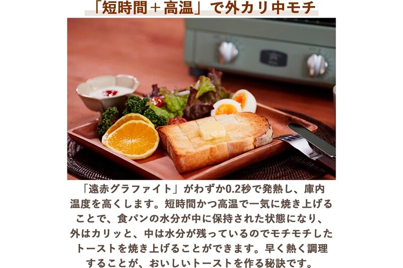 Amazonでみる遠赤グラファイト搭載で、外は香ばしく中はふんわりとした食感を狙いやすく、朝の一枚が楽しみになります。