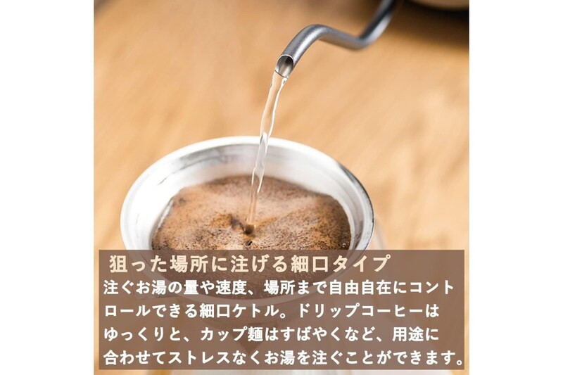 Amazonでみる細くコントロールしやすい注ぎ口になっているので、ハンドドリップコーヒーやお茶を丁寧に淹れたいときに活躍します。