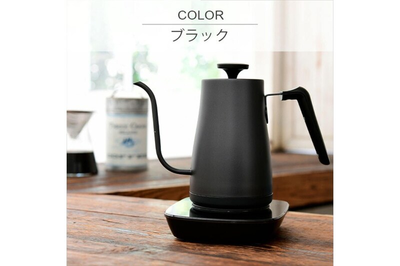 Amazonでみるマットなブラックカラーのシンプルなデザインで、キッチンやカウンターに出しっぱなしでもインテリアになじみやすい電気ケトルです。