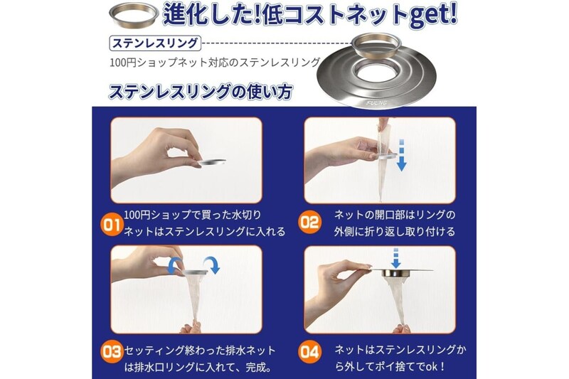 Amazonでみる排水口にセットして使うタイプで、浴槽側のゴミ受けとしてもユニットバスの排水口にも対応しやすい仕様になっています。