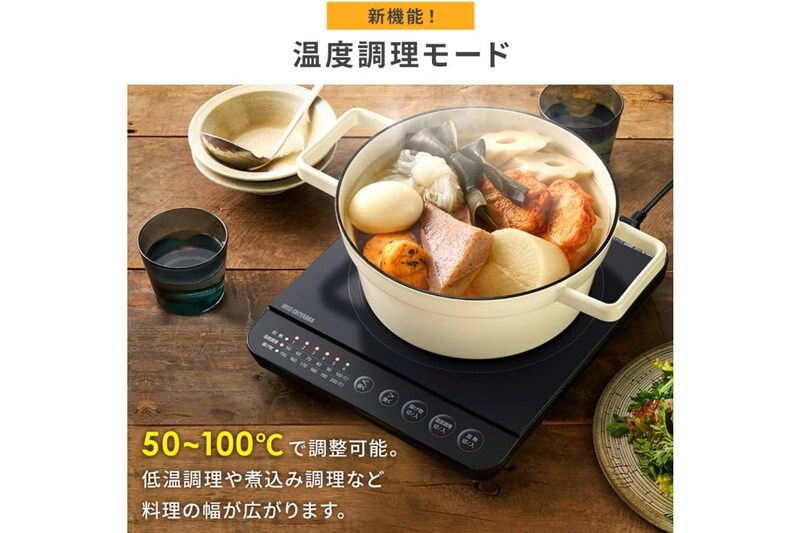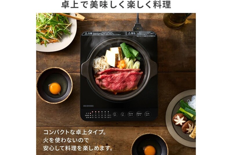 Amazonでみる対応するIH調理器具と組み合わせれば、日々の料理から来客時のもてなしまで、一台で幅広いメニューに対応できるIHコンロです。