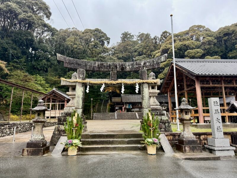 鳥居をくぐり、深い緑に包まれた階段を上がって本殿を目指します。