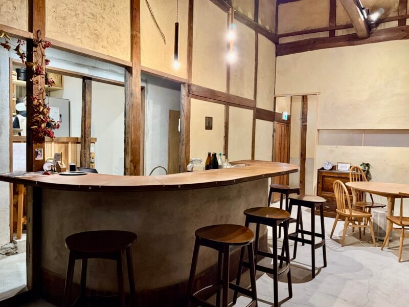 「以前から、すてきだなぁと思うお店があったら設計した人を調べていたんです。すると、どこも奥田達郎さんがしてはって、思い切ってご連絡したらお引き受けいただけたんです」と、大阪で暮らす妹の美緒さん。施工は古民家再生を手がけるご近所の宮村建築工房さんに、ロゴはokuru designさんに……とあれよあれよと話がまとまったというから、タイミングってあるんだなぁ!としみじみ思いました。