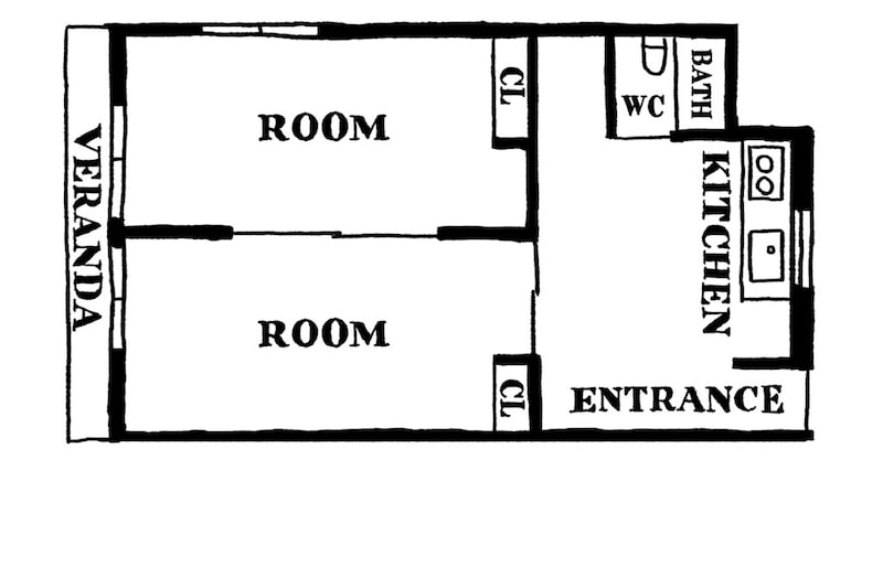 開口が大きい窓に臨むのは、庭で育つグリーン。Mikiさんが暮らすアパートの大家が植えたものだそう。38㎡の空間に2部屋あり、天気のいい日は、木漏れ日のかけらが空間をやさしく照らしている。