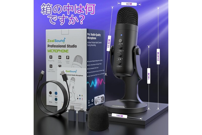 PCやタブレットに接続するだけで使えるUSB接続のコンデンサーマイクです。