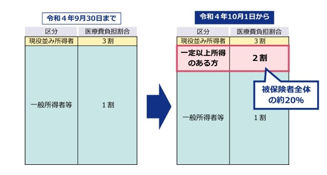 「2割化」の対象は75歳以上等(一部65~74歳も含む)のうち一定以上の所得(※)がある高齢者で、後期高齢者医療の被保険者全体の約2割(約310万人)にあたる。1人あたりの年間の平均引き上げ額はおよそ9000円と推計されている。
