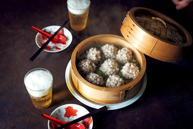 4. 蒸し器に、あれば白菜の青い葉などをしき、3を並べ、10 分ほど蒸す。