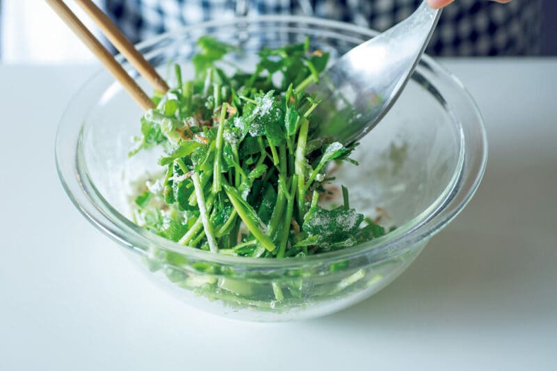 1. せりは4 ~ 5㎝長さに切る。