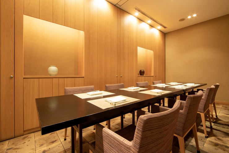 京橋駅から徒歩1分の好立地にある同店は、落ち着いた空間で四季折々の料理を提供する日本料理店。落ち着いた雰囲気が漂う店内には、座席間隔にゆとりを持って設えられたカウンター席のほか、テーブル席や人数に応じた異なる広さの個室を完備。
