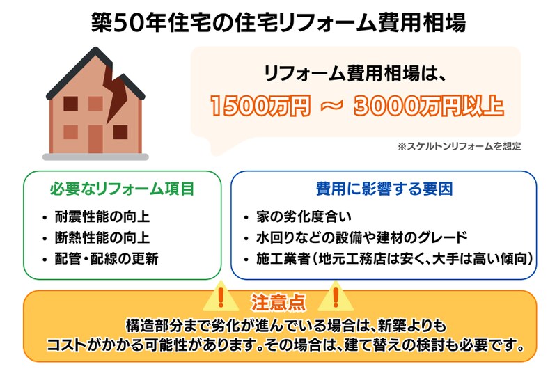築50年の家は老朽化が進んでいますが、リフォーム自体は可能です。