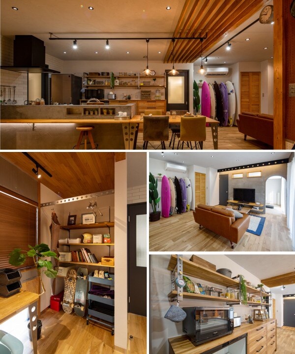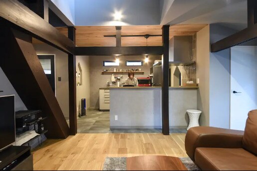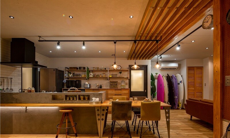 建具や梁を生かし、和とヴィンテージと北欧がほどよくミックスされたオシャレな内装に仕上がっています。