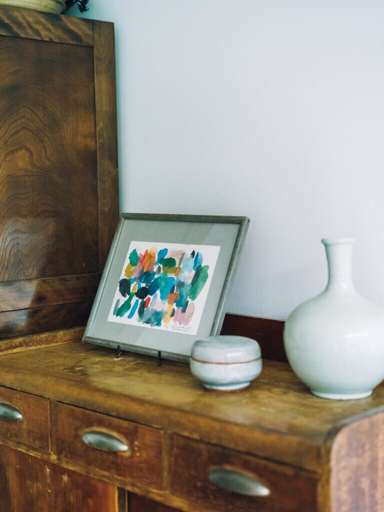 古い和家具の上には絵や陶磁器を飾り、起きてすぐ整えるベッドの上にはインドの手織り布を掛ける。どこにいても部屋全体が目に入るからこそ、いつも細部まで気を配る。