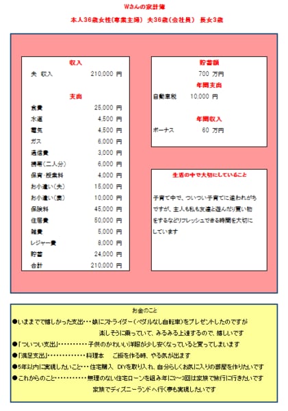 マイホーム取得という目標にむかってご夫婦でやりくりされている家計簿ですね。