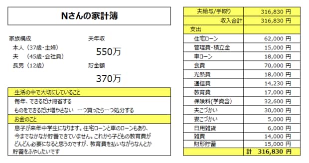 貯金できず家計を見直したい30代主婦Nさんの相談内容