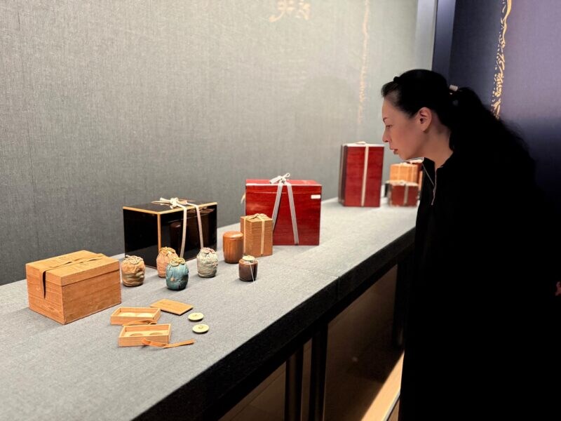 「誂」の展示室に進むと、とにかく箱がいっぱい。持ち主を代えながら受け継がれてきた茶道具は、大切にされるあまり、箱を作り、その箱を守るための箱、さらにまた次の持ち主が箱を作り……とマトリョーシカ状態に。