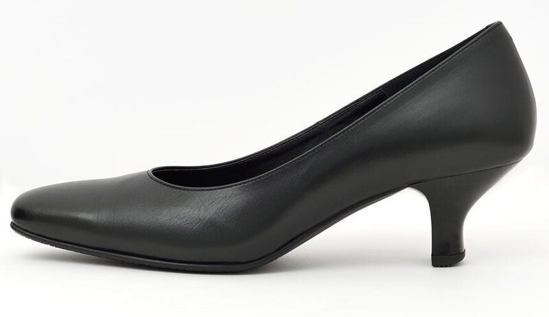 「葬儀であれば、華美にならないブラックパンプスが定番です。フォーマルウェアはスカート丈が長めなので、ヒールが低すぎるとバランスが悪くなってしまいます。5cmくらいのヒールがよいでしょう」