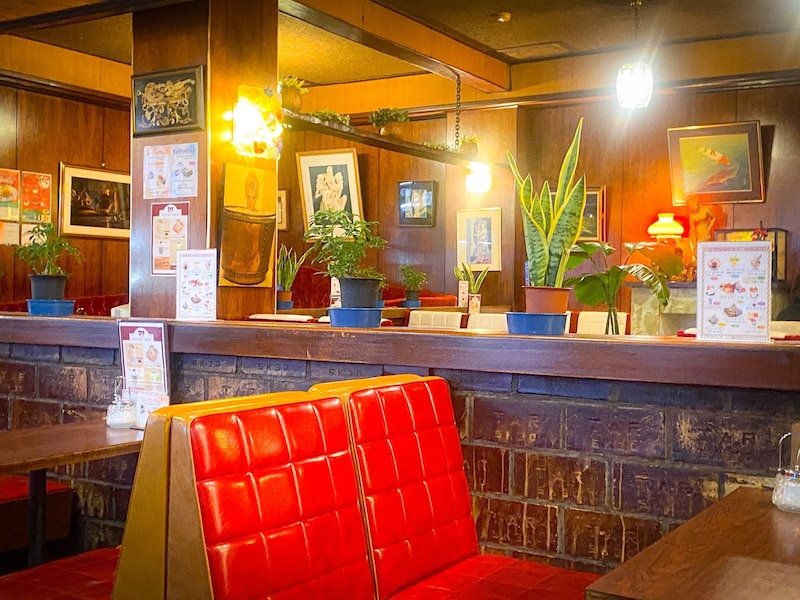 赤を基調にした店内は、どこかノスタルジックで温かみのある空気感。昭和の面影を色濃く残す空間は、今では貴重な存在となった純喫茶らしさにあふれています。