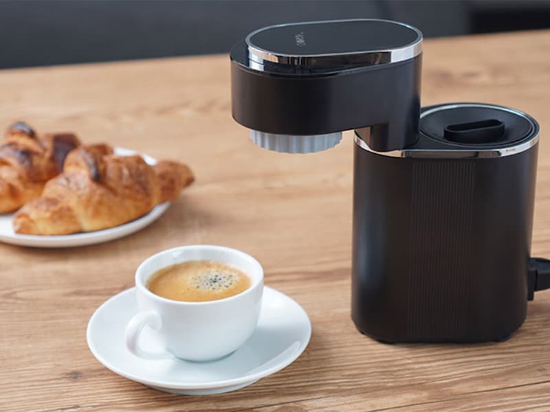 さまざまなスタイルのコーヒー粉に対応。上質なエスプレッソを楽しめます。使い方もカンタンで、コーヒー粉や挽いた豆、あるいは「ネスプレッソ」などのコーヒーカプセルを水やお湯とともに本体へセットし、側面のボタンを押すだけ。冷水からで約3分、お湯なら約20秒と、どちらも短時間で美味しいエスプレッソを抽出してくれます。