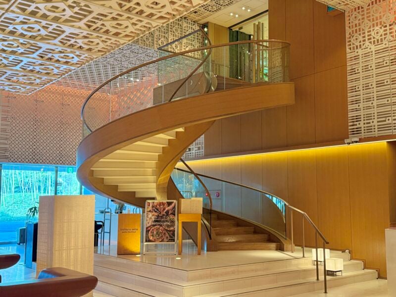 フロントの向かいにある、優美な曲線を描く螺旋階段に特別なひと時を過ごすワクワク感がアップ。