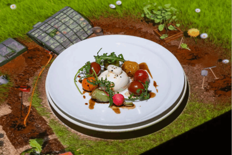 3Dプロジェクションで映し出された身長6cmの愛らしいシェフが(ちょっと失敗しながら)全身を使って調理してくれます。