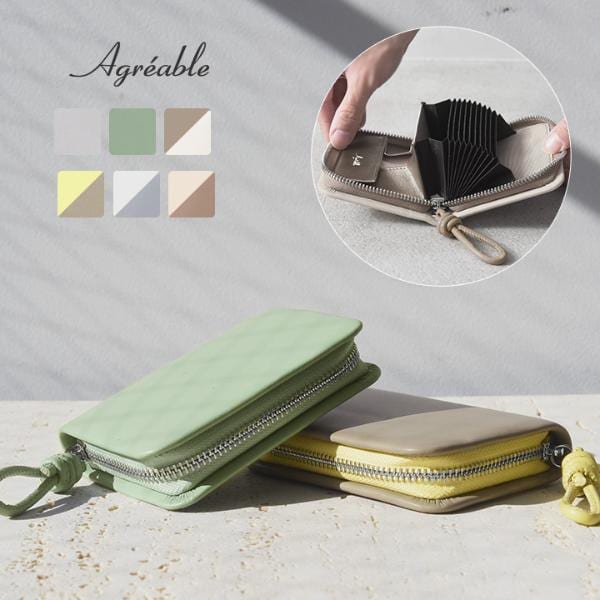⇒本革ラムレザー コインケース付カードケース 二つ折り財布 じゃばら 蛇腹/アグレアーブル Agreable