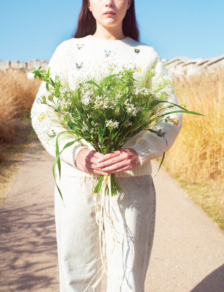 今月の「&days」はソウルからお届け。2024年に景福宮から程近いエリアにオープンしたフラワーショップ『comorebi flower』のキム・ミンギョンさんが選んでくれた今月の花は、長く伸びた茎の先に淡い色合いの小ぶりな花を咲かせる姿が印象的なシレネ。「ナデシコ科の花で、繊細で可憐な表情が透き通るような空気が気持ちいい冬の韓国の街にもよく似合うと思って選びました。かすかなピンクの小花が群れをなして咲く姿が美しい花は、そのイメージのままにシンプルにブーケにまとめるのも素敵ですが、一輪挿しに生けても愛らしい表情を見せてくれますよ」(comorebi flower Instagram@comorebi.flower)ニット¥268,400、デニムパンツ¥157,300(以上ロエベ ジャパン クライアントサービス 03−6215−6116)