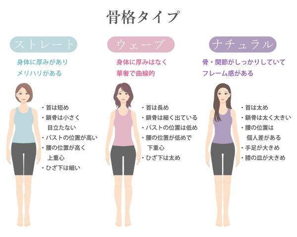 骨格診断とは、生まれ持った体のラインや質感の特徴から、最もスタイルがきれいに見える服装などを導き出す理論のことです。