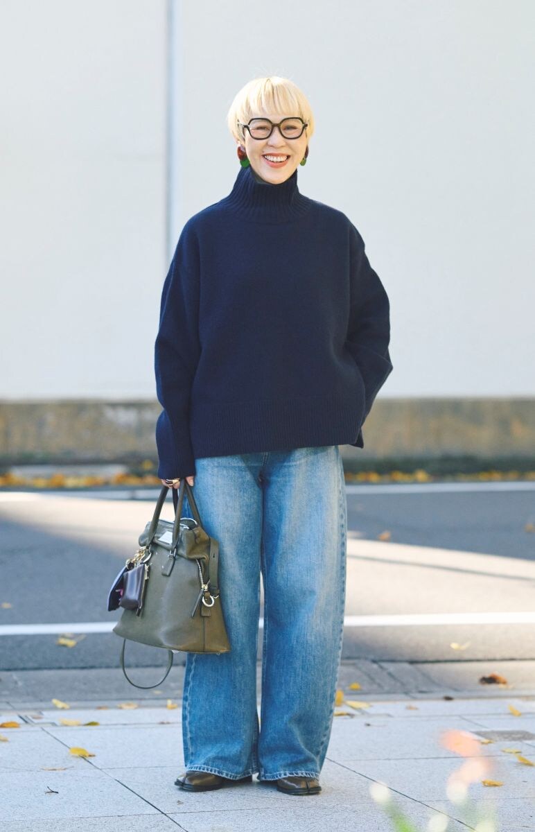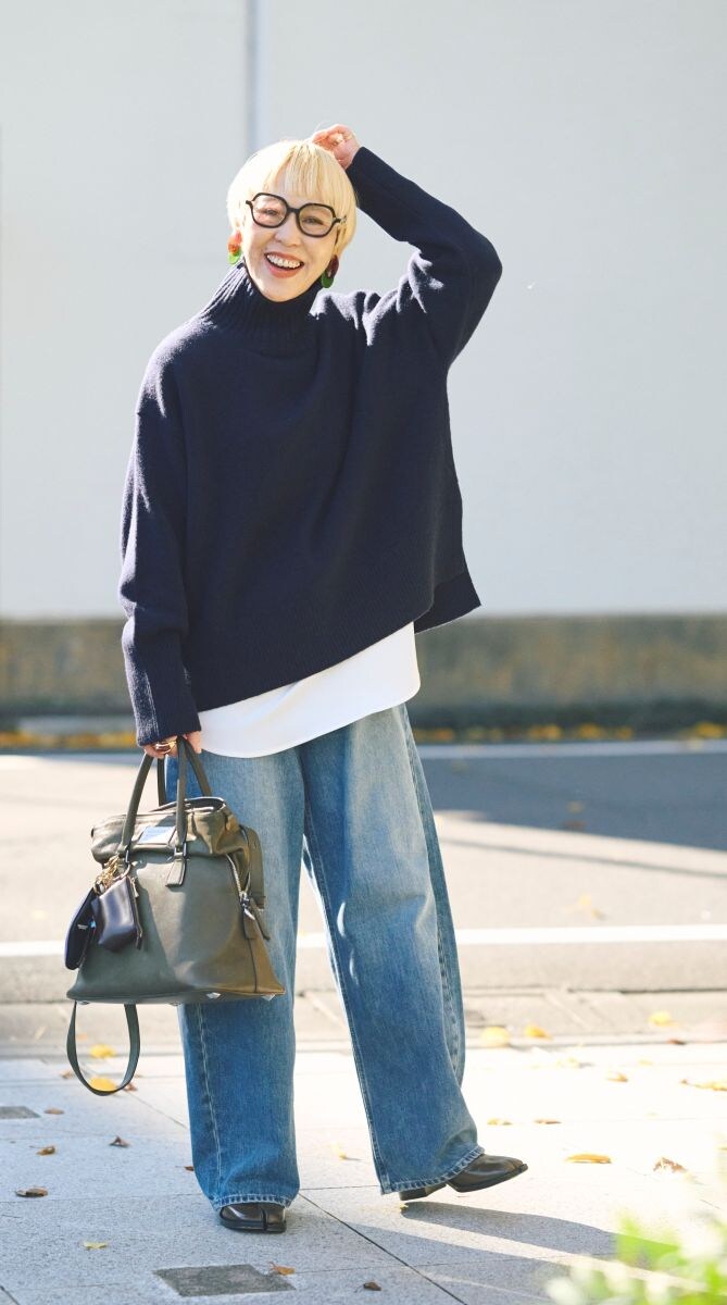 上下をセパレートすることで、ニットとデニムのシルエットが際立って、おしゃれ感アップに!