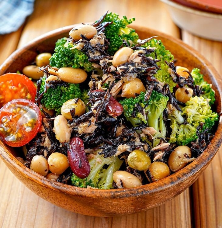 野菜レシピ1:体リセットにぴったりな栄養たっぷり!「ブロッコリーとお豆のひじきサラダ」
