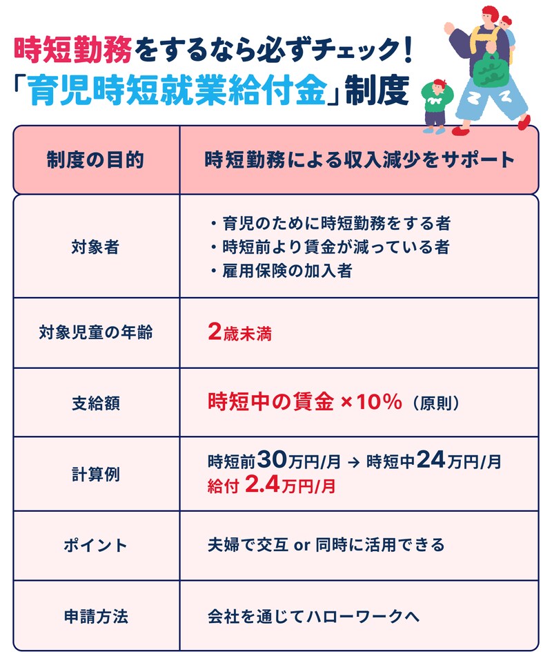 育児時短就業給付金制度の特徴や支給額、要件をまとめました。