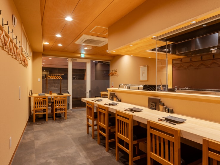 九段下駅から徒歩5分の場所にある同店。木を基調とした店内にはカウンター席とテーブル席が用意され、落ち着いた雰囲気の中で食事が楽しめます。宴会利用にも対応しており、新年会の場としても使いやすい一軒です。