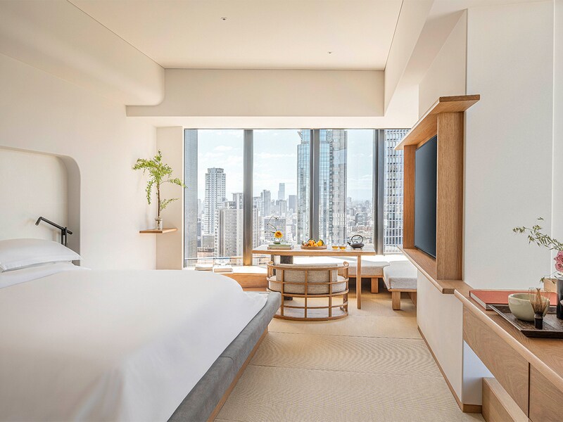 2024年12月、15ヶ月に及ぶ大規模な改装を終え、759の客室を刷新し「水スイート」と「空スイート」を増設。ともに折り紙をモチーフにした幾何学模様を随所にあしらい、和の趣を感じさせる。