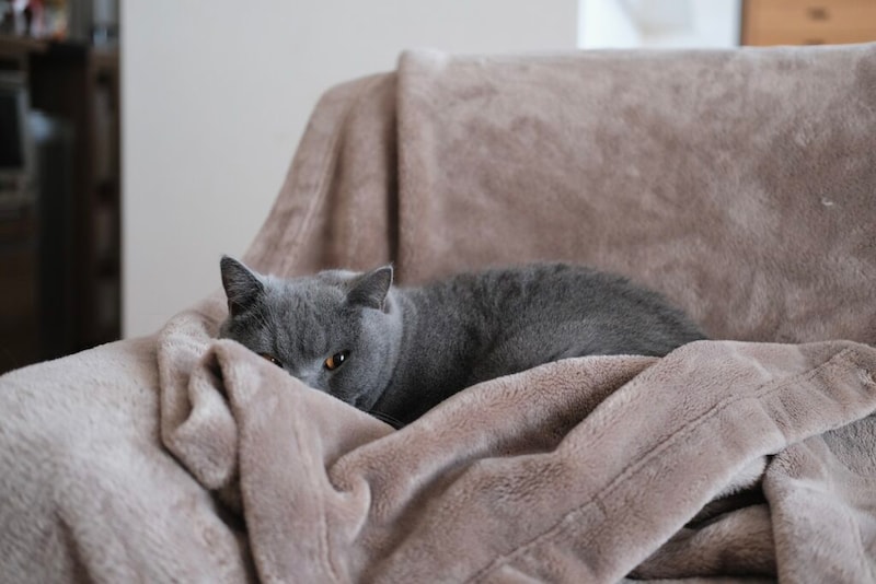 眠たい空気につられて、ぼくも毛布に包まります。くっついて寝ることはないけれど、同じ空間でのんびりするのは好きなんです。