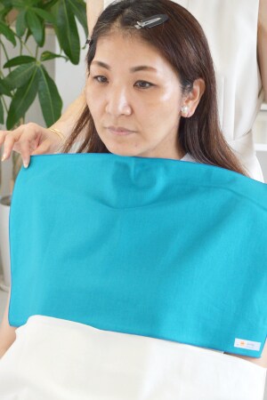 「秋葉さんの場合、夏はターコイズブルーもお顔が華やかに見えてステキだと思います。顔のまわりにビビッドな色があっても、パンツを白にしたらOK。あとは、バッグや靴など、小物に差し色として入れるのもアリですね」