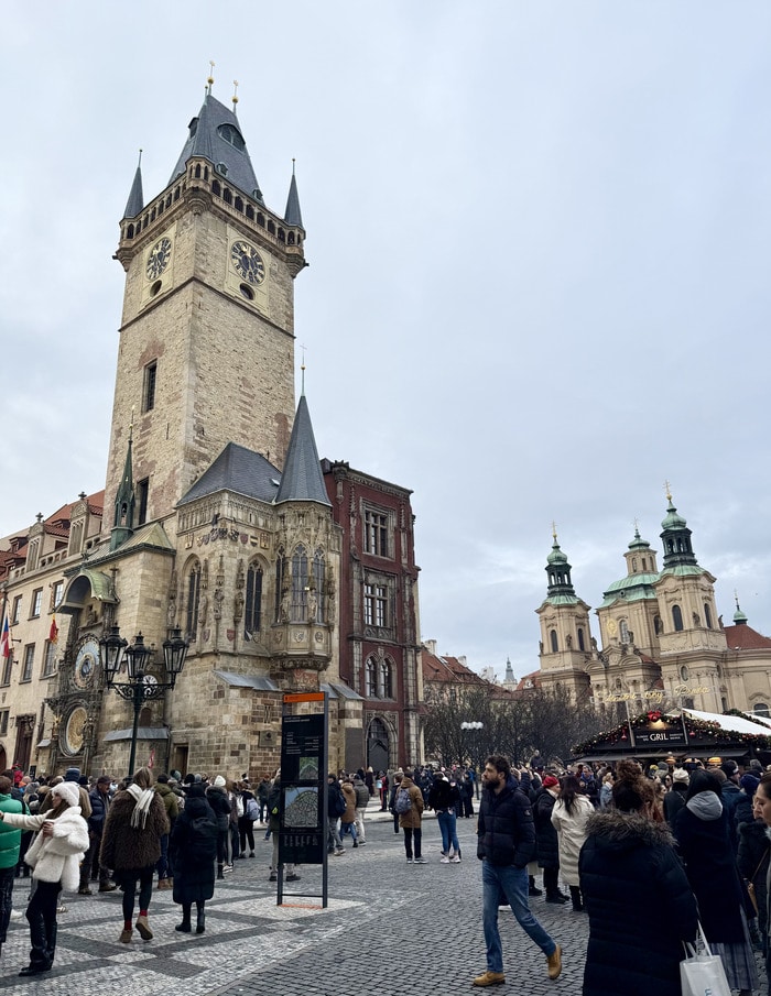 この広場一帯は、プラハという街の時間が凝縮されているような場所で、広場を囲むように歴史的建築が並び、視線を上げればゴシック様式の双塔が印象的なティーン教会も目に入る。