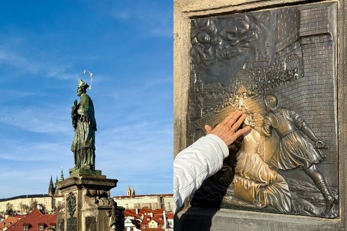 中でもひときわ人気だったのは、聖ヤン・ネポムツキー像。右側の台座のレリーフに触れると幸せが訪れるといわれている。