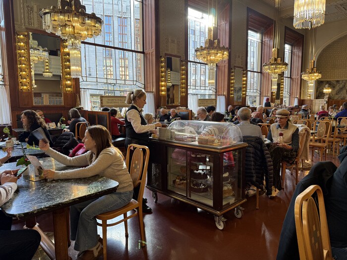 長距離移動ではあるものの車内は落ち着いた雰囲気で、レストラン(食堂車)もある。ゆったり過ごしたり仕事をしたり、ブダペストの余韻を残しつつ、少しずつ気持ちを切り替えていく。鉄道旅ならではの時間の使い方ができるのも中欧を巡る旅の魅力だ。