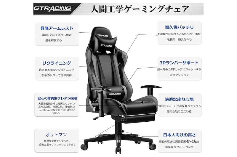 Amazonでみるその中でGTRacingは比較的手の届きやすい価格帯でありながら、多機能を備えているのが強みです。