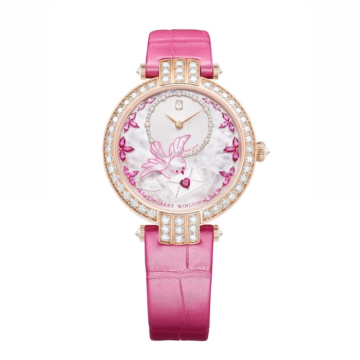 2016年以降、バレンタインデーを特別なタイムピースで祝福してきたハリー・ウィンストン。今シーズンは、ハート型のルビーで封印されたラブレターをくわえる白い小鳥を主役に、愛の新しい表現を追求した。