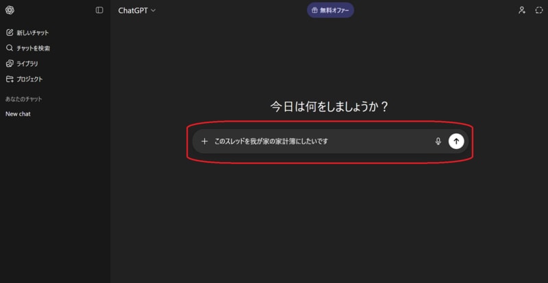 質問バーに「このスレッドを我が家の家計簿にしたいです」と入力します。