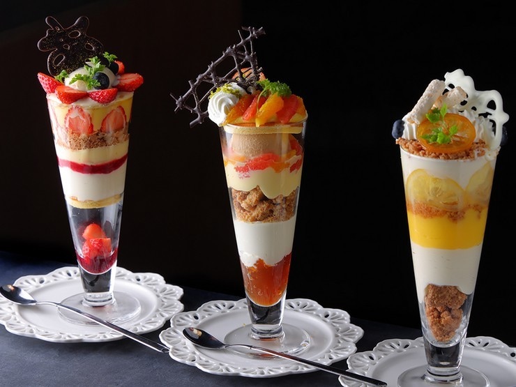 専属パティシエがつくるパフェ。(左から)『ルージュ・ルージュ』『シトラスティー』『ムラング・シトロン』