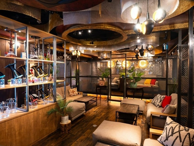 木目調のインテリアとレンガの壁が特徴的な大人の隠れ家でリラックス時間を提供。エリア別に空間演出がされた店内は、ほとんどがソファー席です。シーシャは1~2時間楽しめるので、長時間ゆったりと過ごせるように配慮されています。完全個室や半個室もあり、シーンに合わせて利用できます。