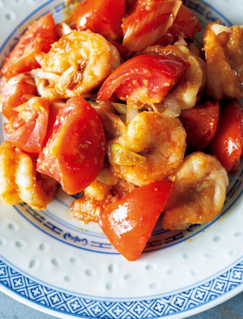 トマトのフレッシュ感を残し、ぷりっぷりのえびとトマトの酸みを楽しむ夏にぴったりのおかず