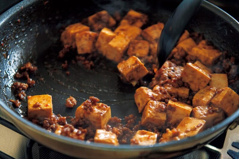 豆腐から出る水分の汁気がなくなるまで煮詰めるのがコツ。