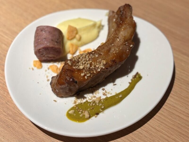 なかでも、うまみが凝縮されたオマール海老のリゾットは、マストでチェックすべし。濃厚なソースとお米がよく絡み、口に入れた瞬間、えびの風味をしっかり感じることができました。まさに口福! じっくり焼き上げられたポークグリルは、ワインとの相性が抜群です。
