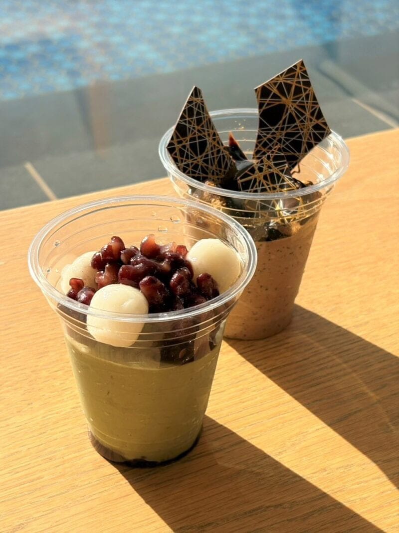 チェックインの手続きを済ませ、ホテルの名物スポット「水盤テラス」でくつろいでいると、突如、甘党の編集Nのレーダーが発動。なにやら、ここでしか食べられない限定スイーツが販売されているようです。
