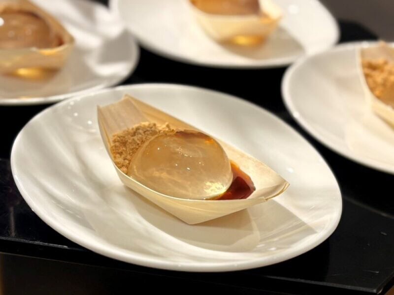 ディナーの直前に焼き上げているシュークリームは、サックサクのシュー生地となめらかなカスタードクリームの黄金バランスが◎。写真・動画映えするプルプル食感の信玄水餅も人気です。
