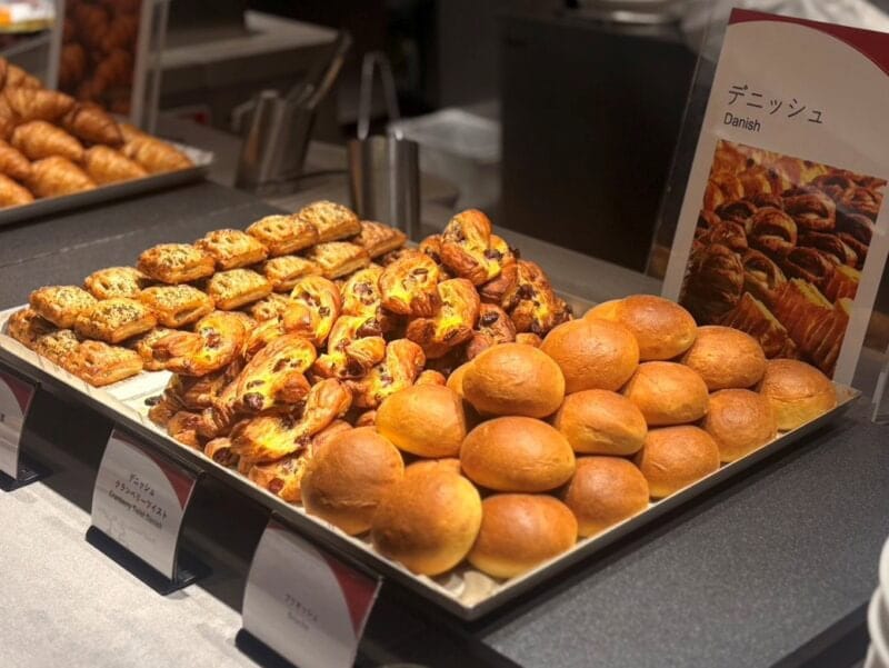 翌日は、早起きをして朝食のビュッフェ会場へ。さっきまで眠くてたまらなかったはずなのに、パンのいい香りに包まれた瞬間、一気に食欲がわいてきました(笑)。